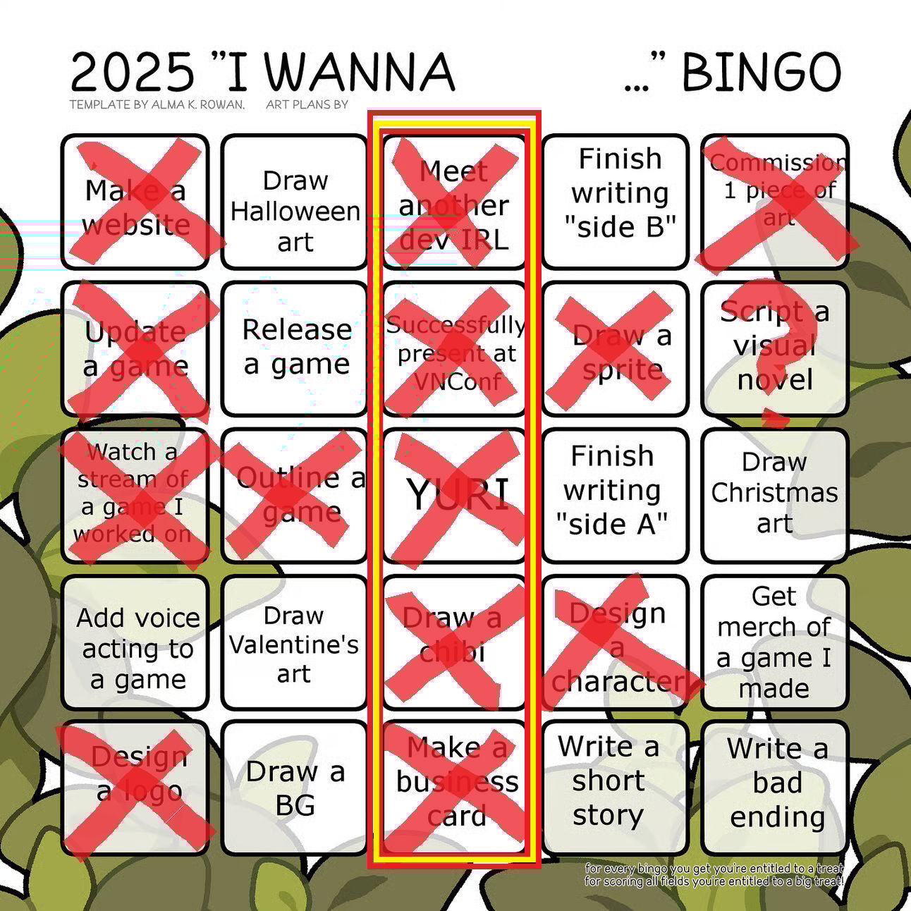 All in all, it was certainly a year. Much to my surprise, I got bingo on that bingo sheet I shared at the start of 2025! Wow! Exciting!